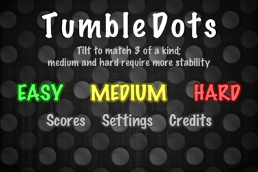 - TumbleDots is a fast-paced match-3 game that uses your iDevice's accelerometer. Tilt the board to line up groups of three or more gems of the same color...sounds simple, but there's a great puzzle challenge made trickier in the motion.